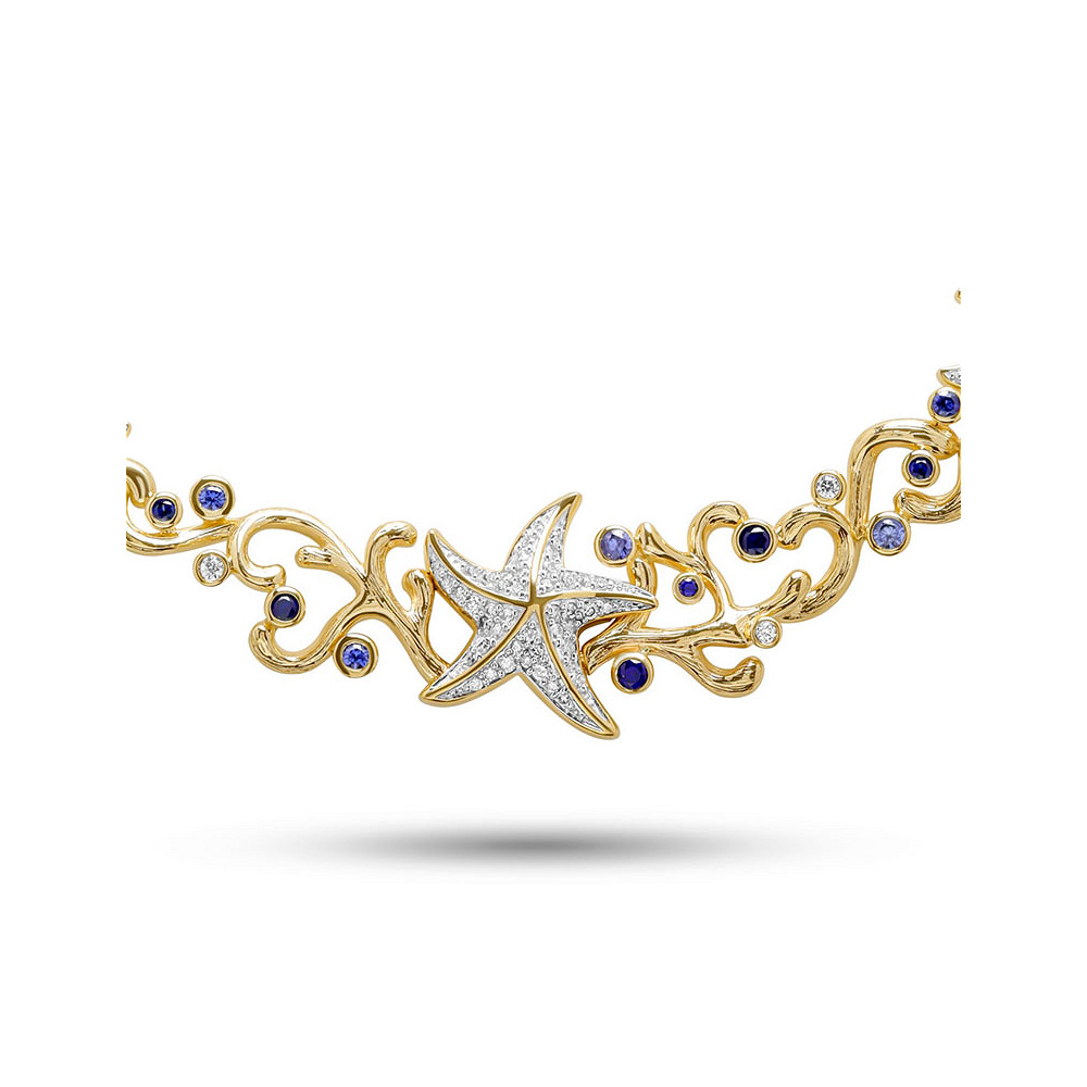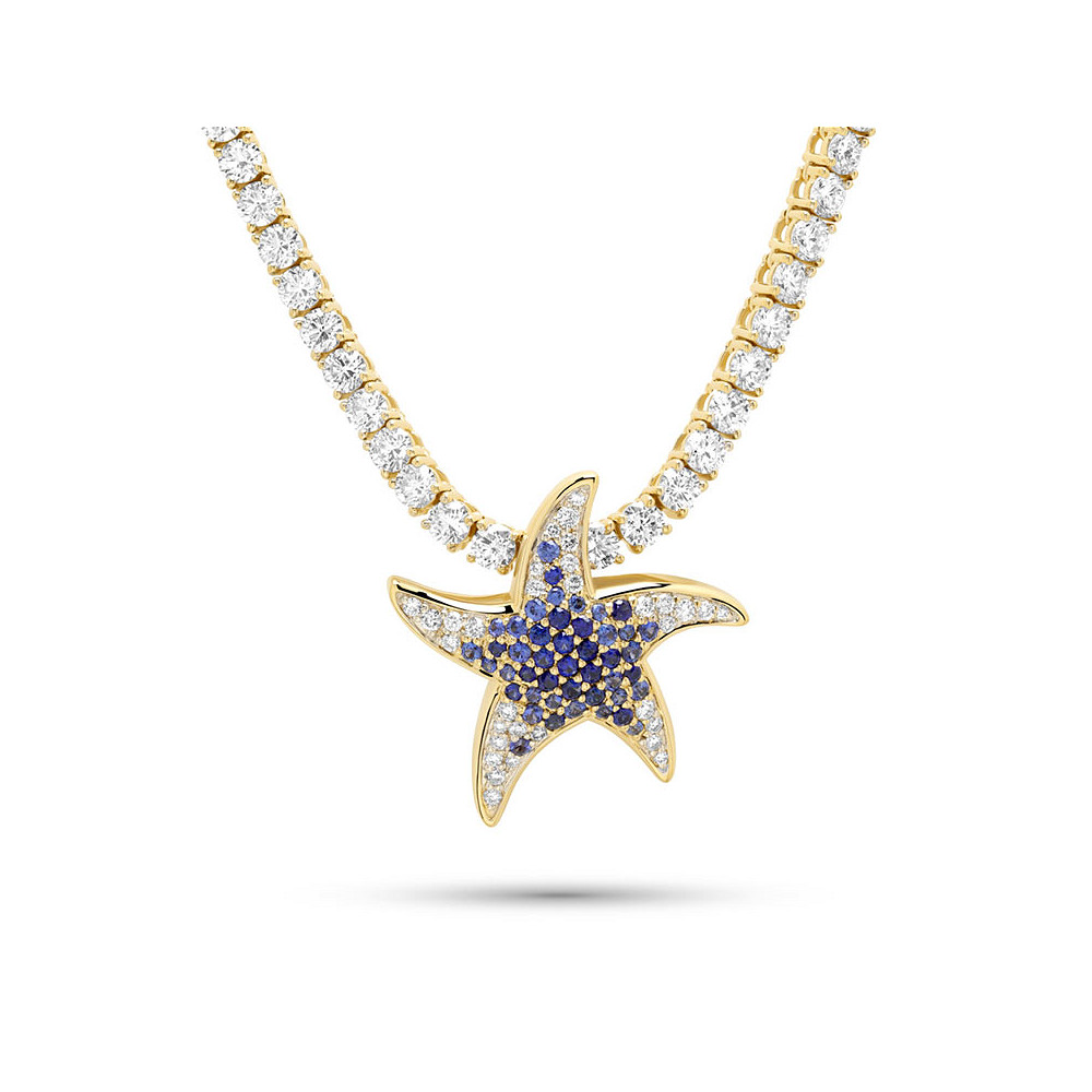 14kt Gold Lab Sapphire and Diamond Starfish Necklace