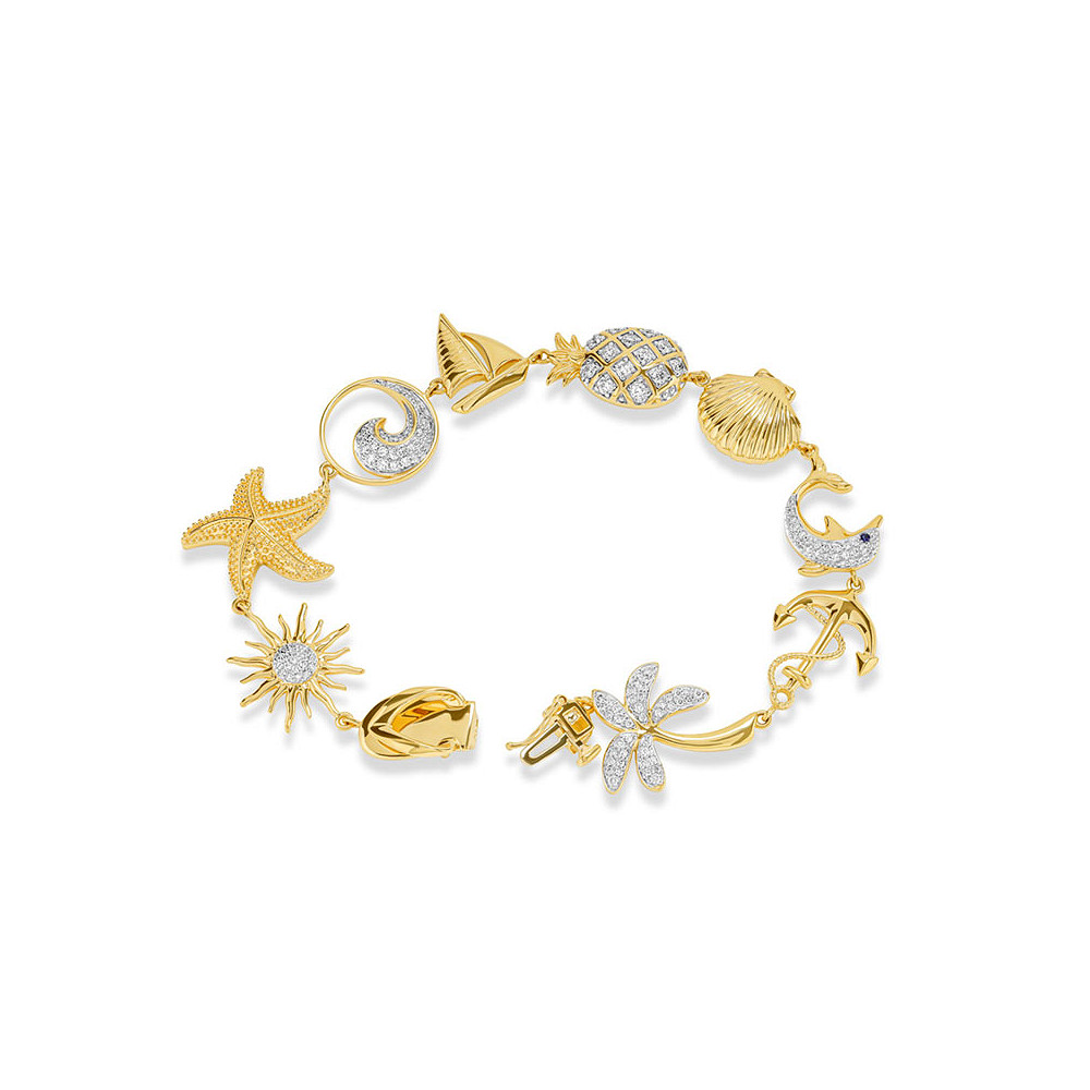 14kt Gold Lab Sapphire and Diamond Multi Charm Bracelet