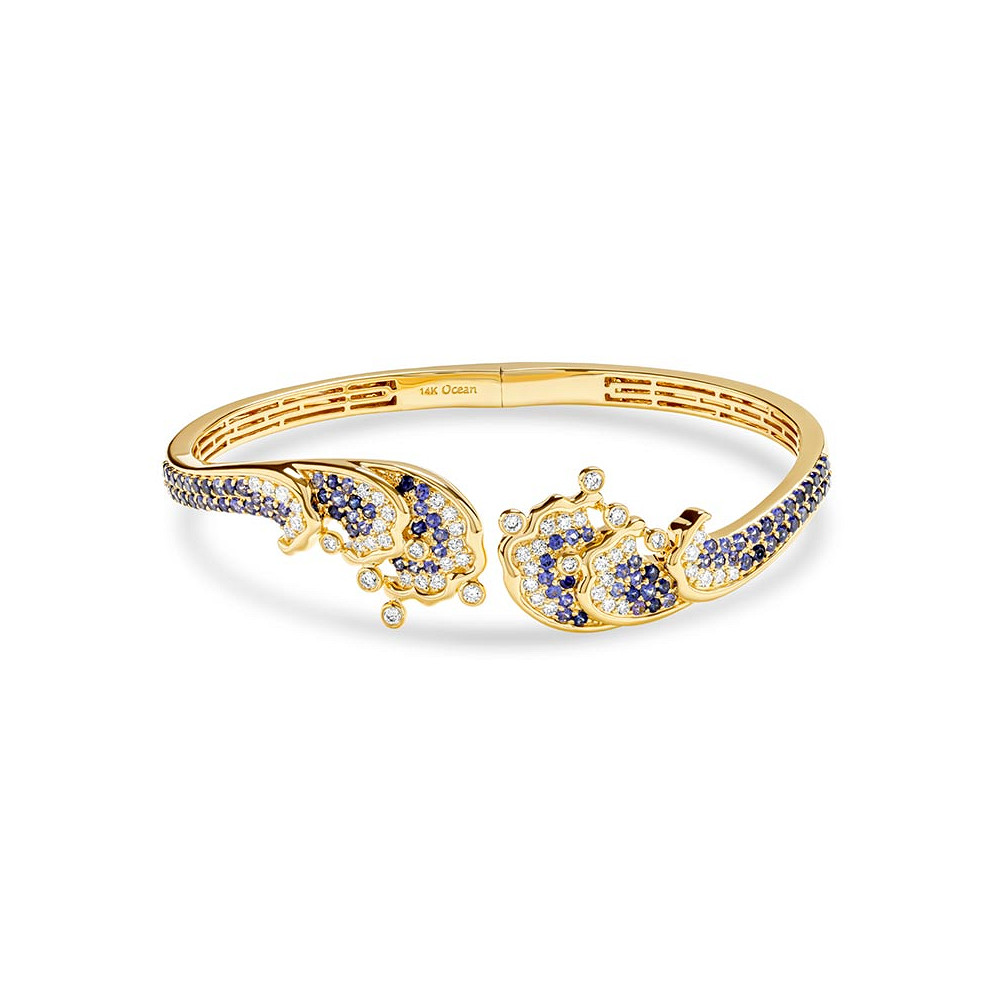 14kt Gold Lab Sapphire and Diamond Wave Bracelet