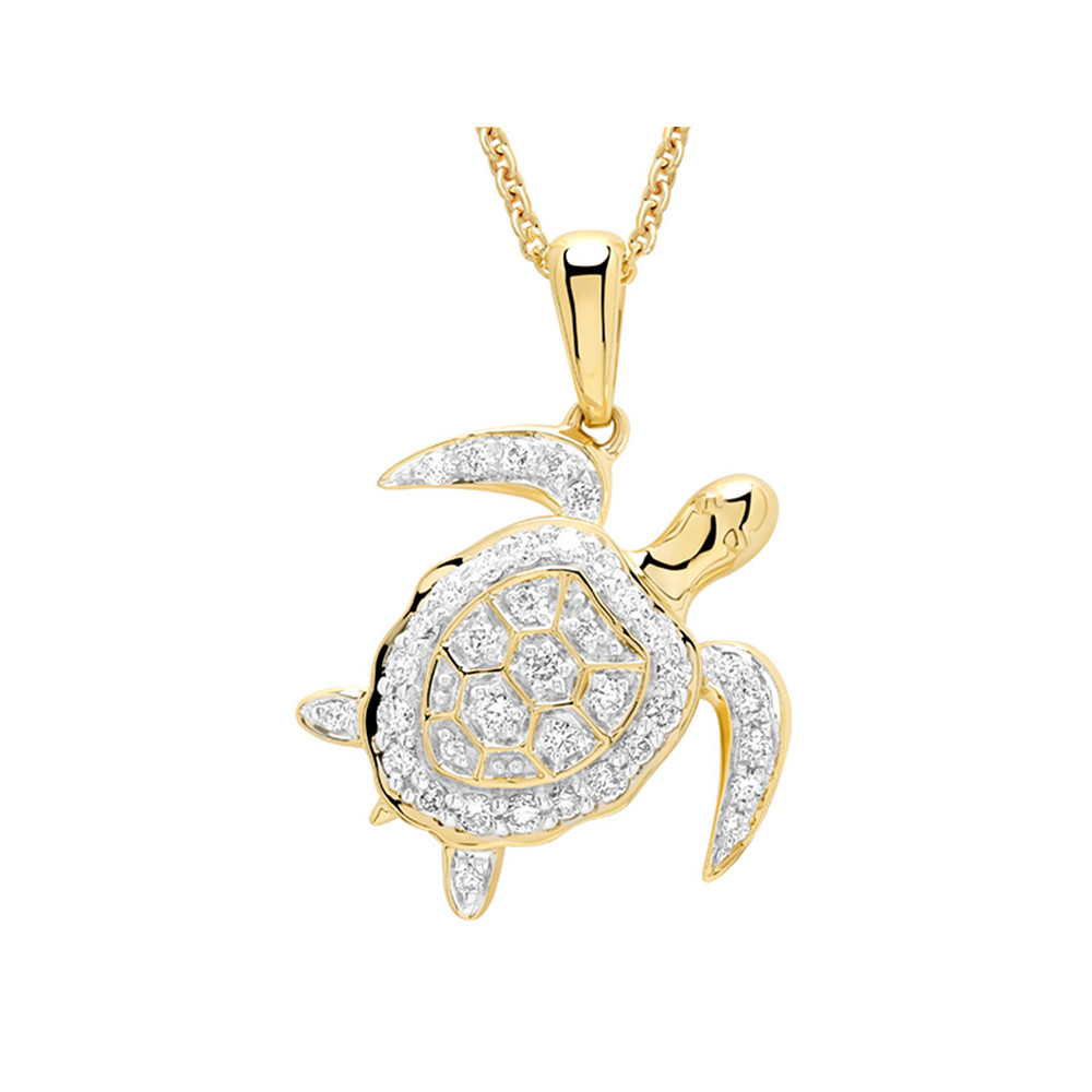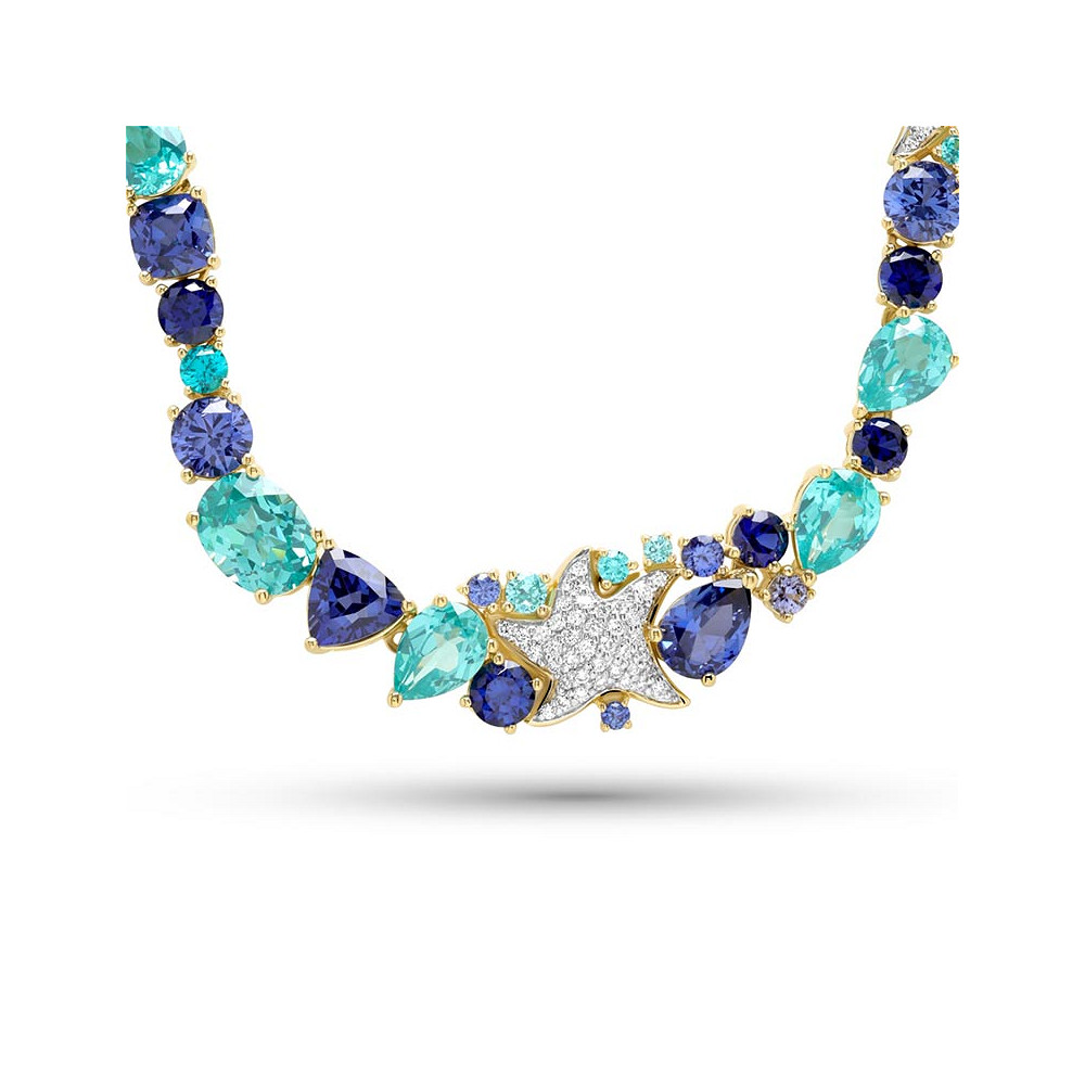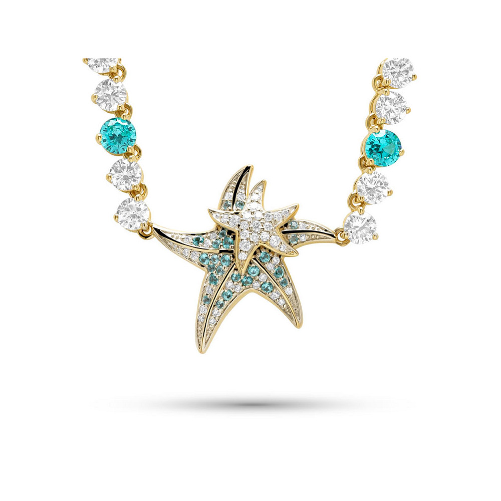 14kt Gold Lab Pariba Sapphire and Diamond Starfish Necklace