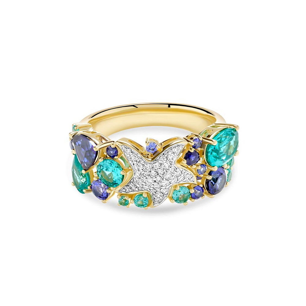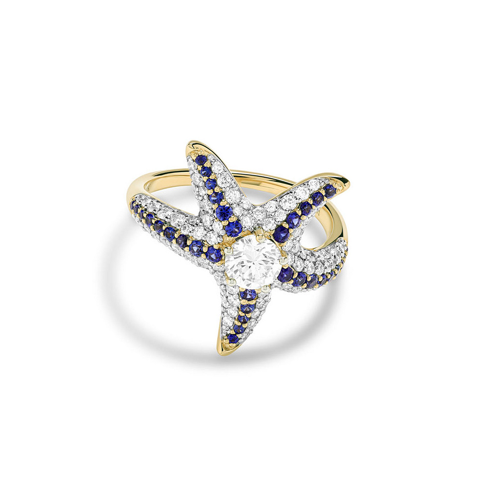 14kt Gold Lab Pariba Sapphire and Diamond Starfish Ring