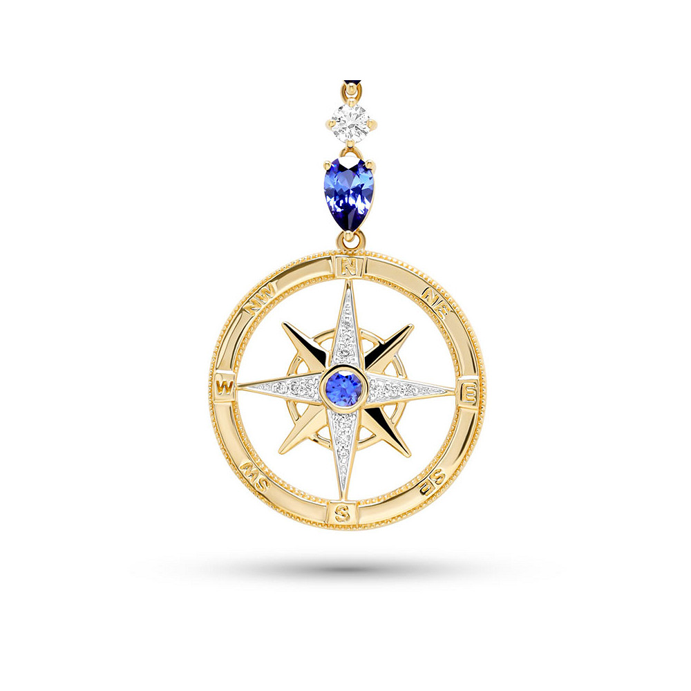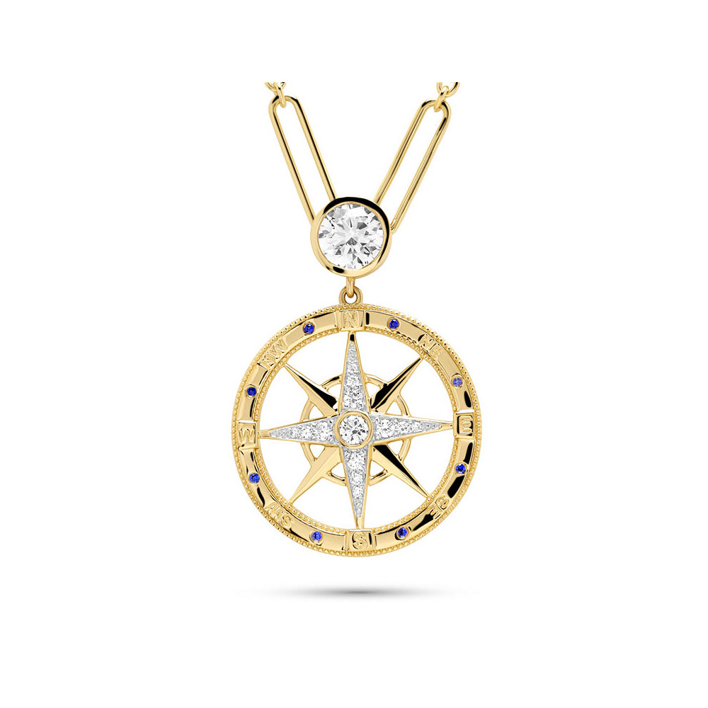 14kt Gold Lab Sapphire and Diamond Compass Necklace