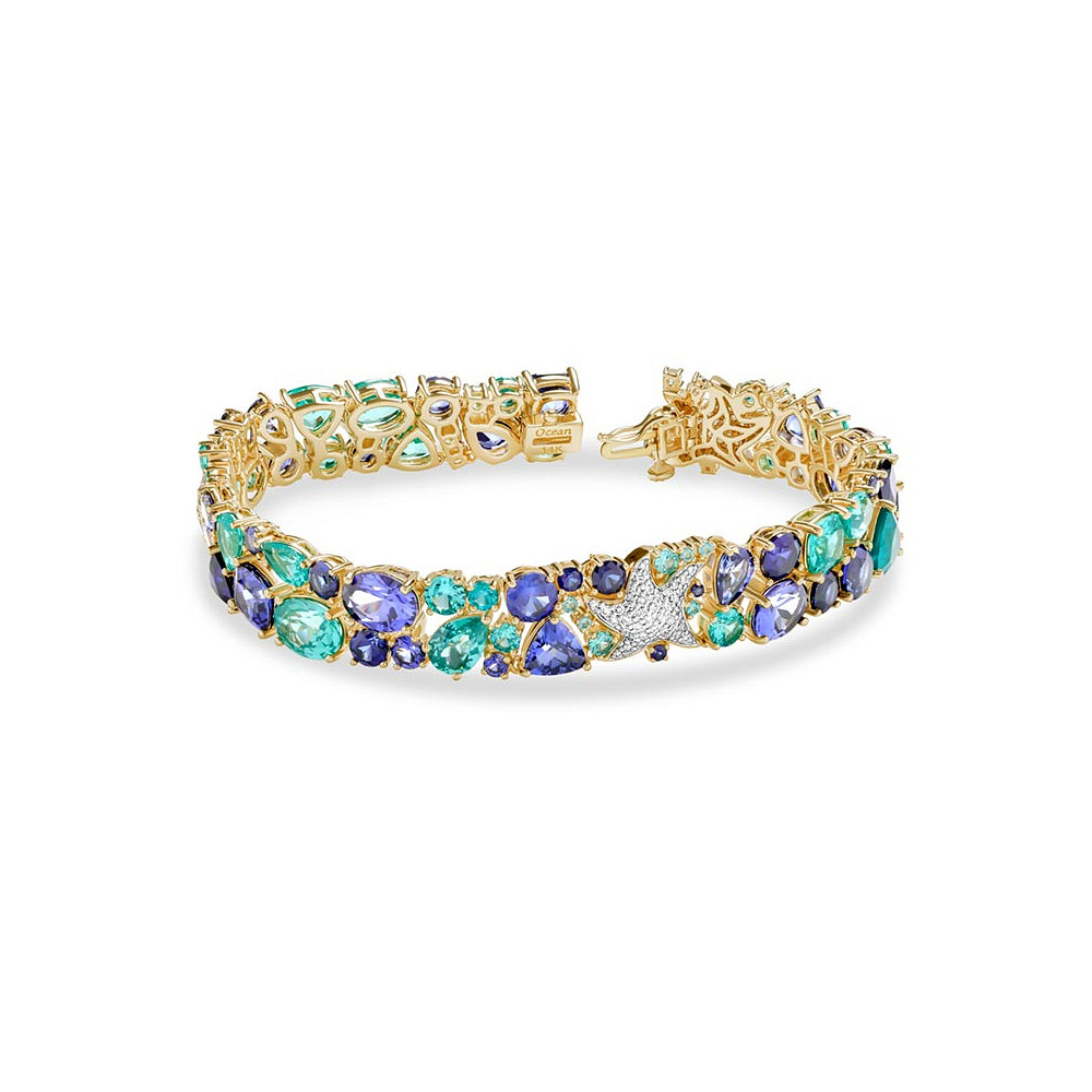 14kt Gold Lab Pariba Sapphire and Diamond Starfish Bracelet