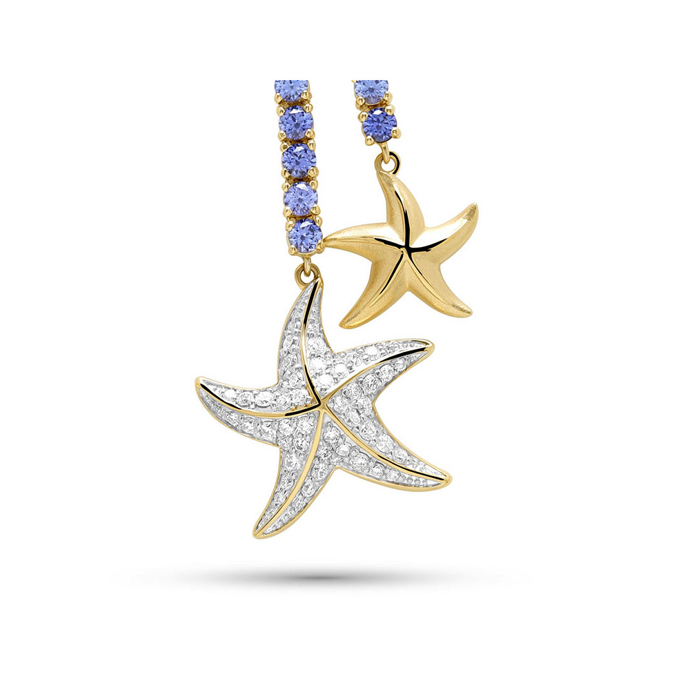14kt Gold Lab Pariba Sapphire and Diamond Starfish Earrings