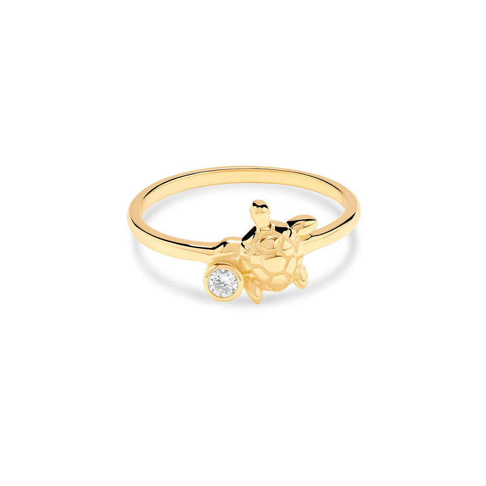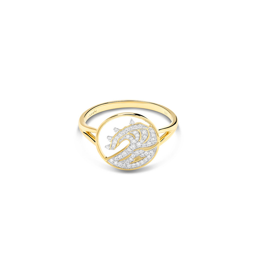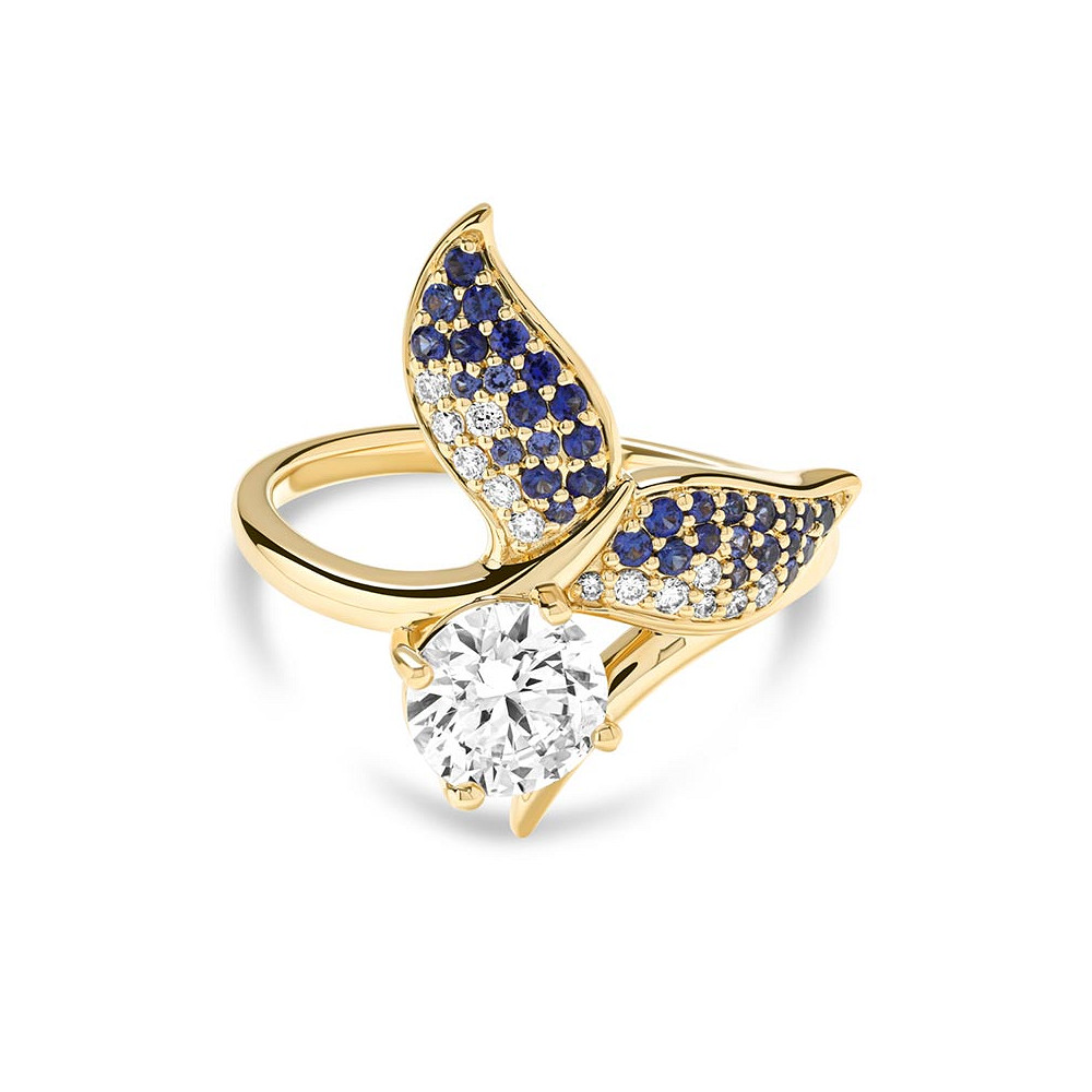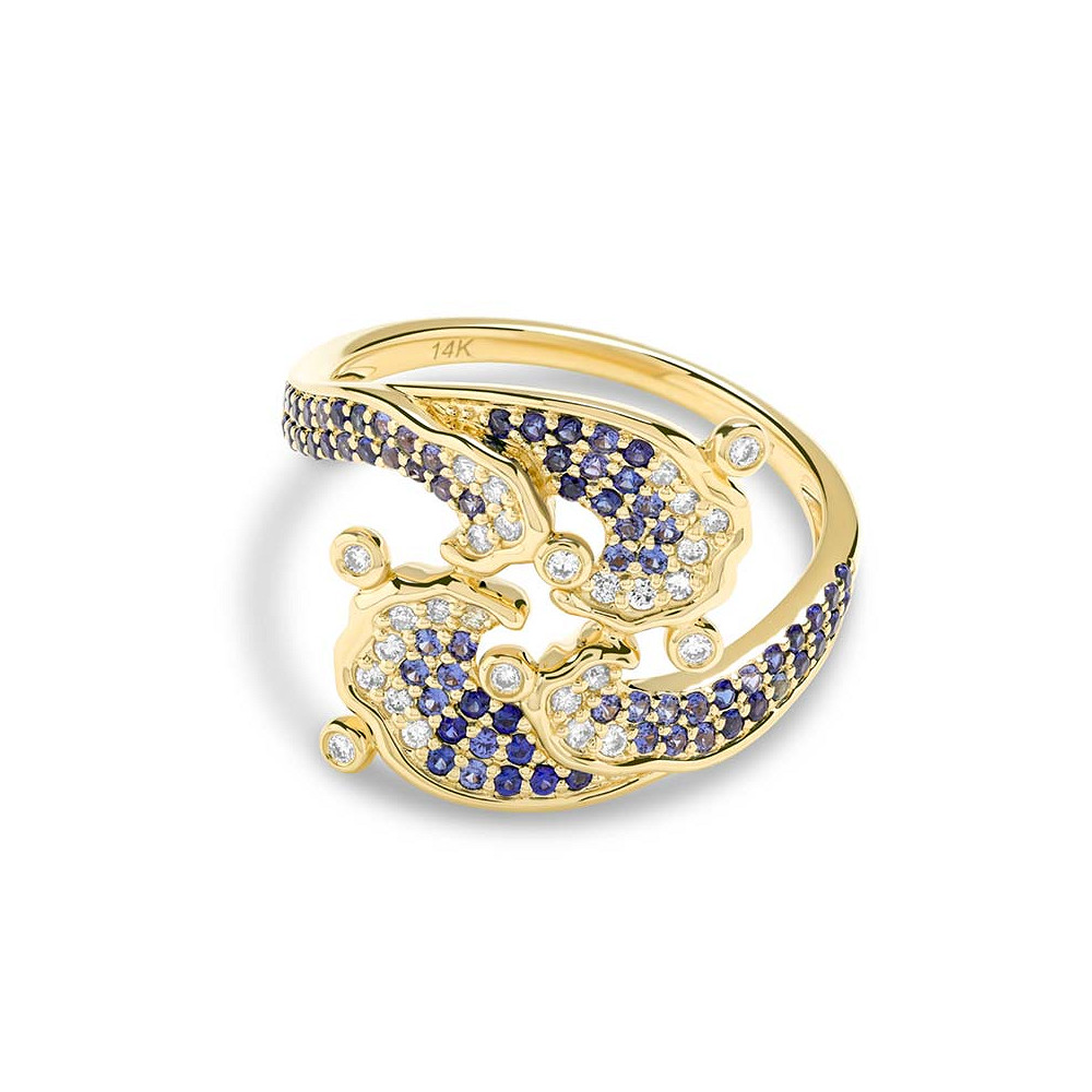14kt Gold Lab Sapphire and Diamond Dolphin Ring