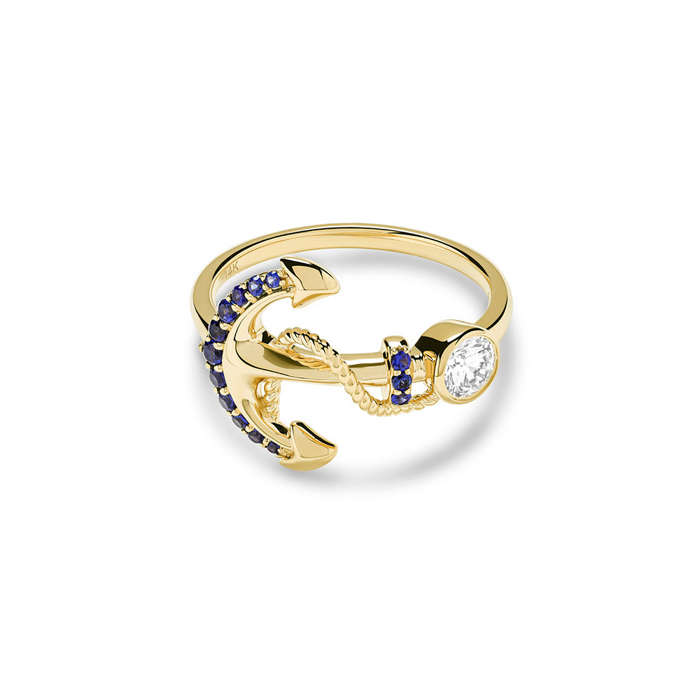 14kt Gold Lab Sapphire and Diamond Anchor Ring