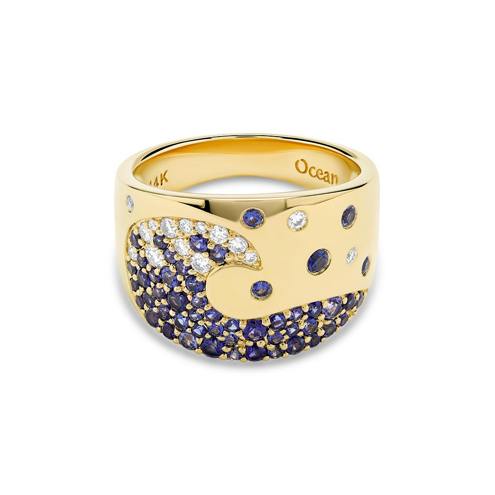 14kt Gold Lab Sapphire and Diamond Wave Ring