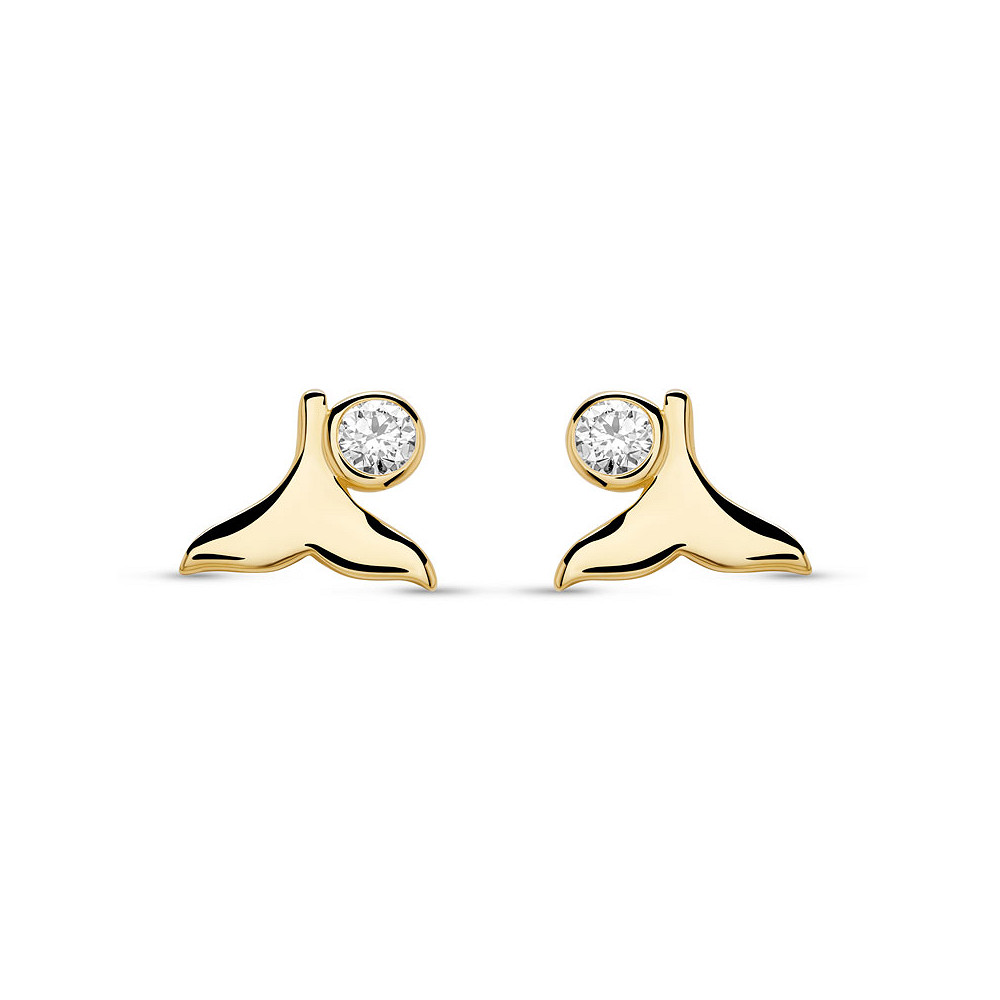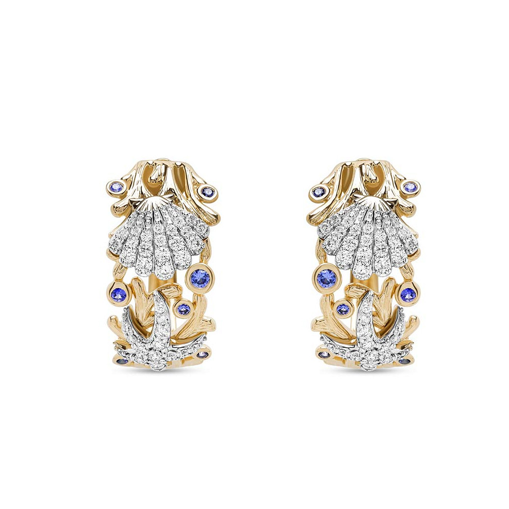 14kt Gold Lab Sapphire and Diamond Shell/Star Earring