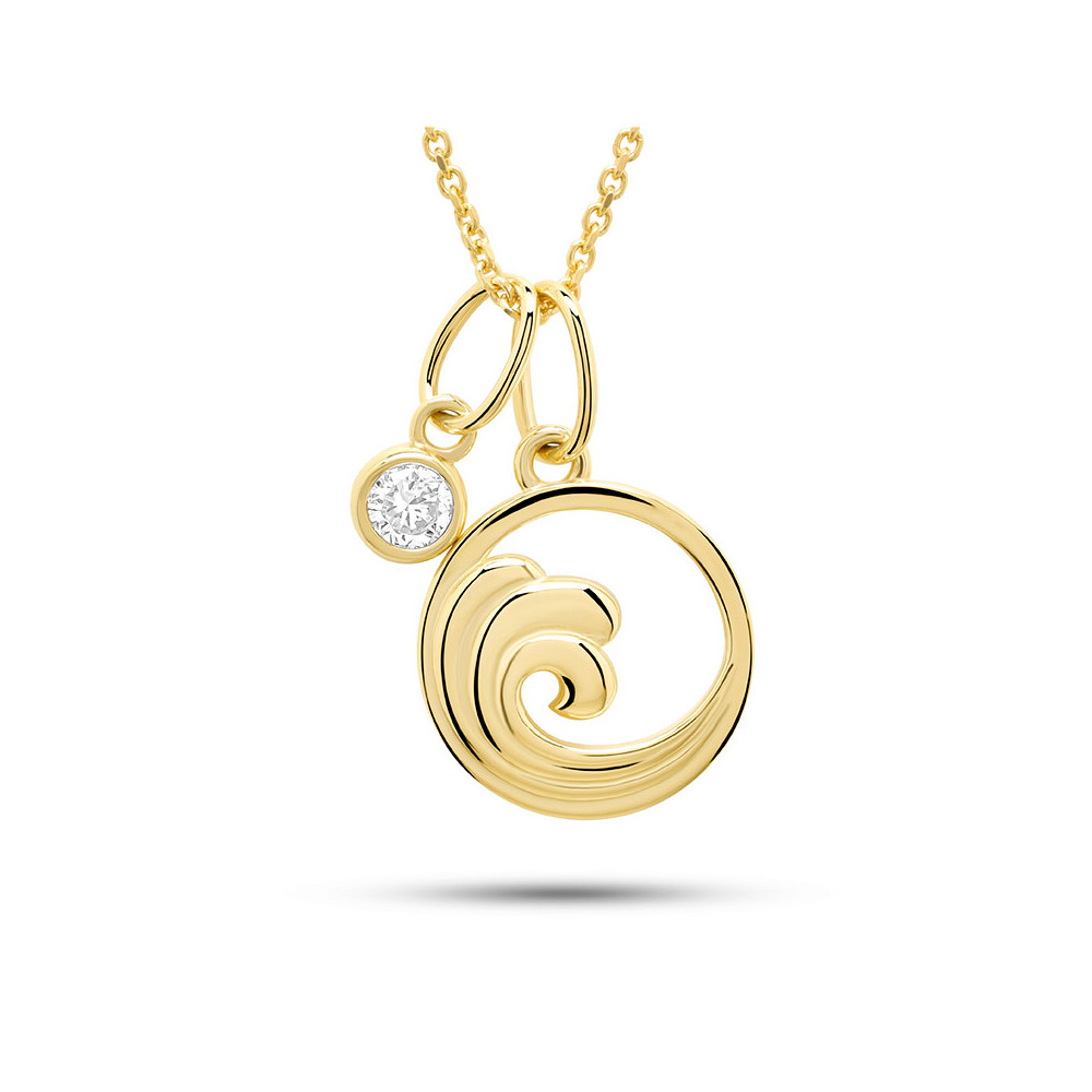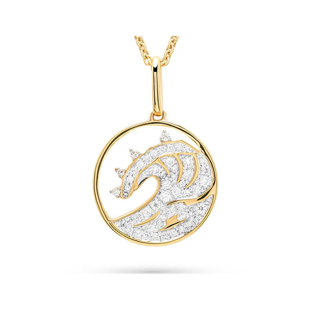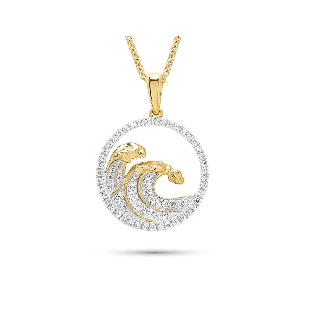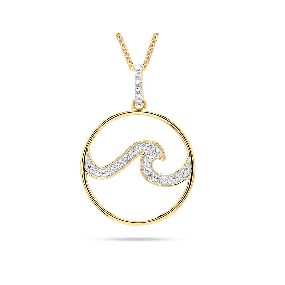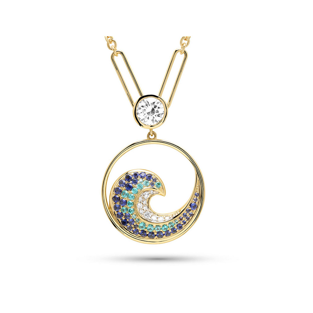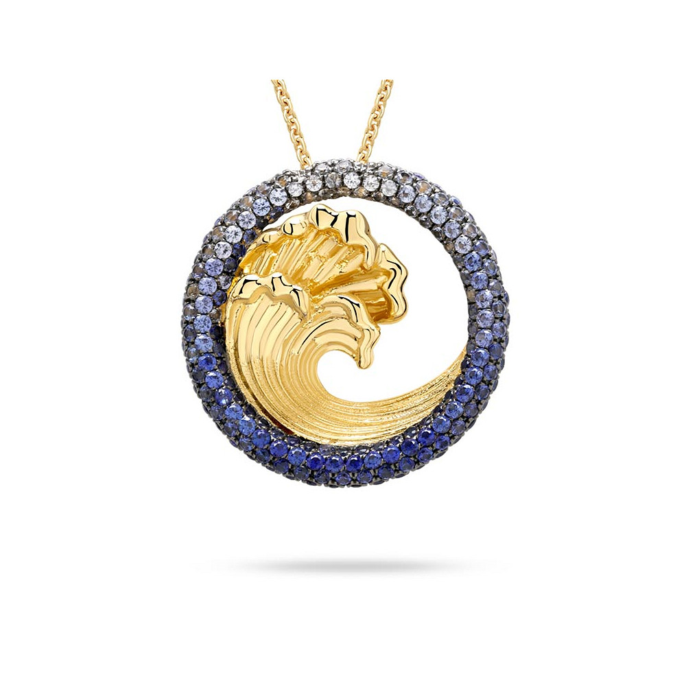 14kt Gold Lab Sapphire Diamond Wave Necklace