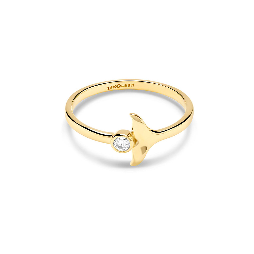 14kt Gold Lab Sapphire and Diamond Whale Tale Ring