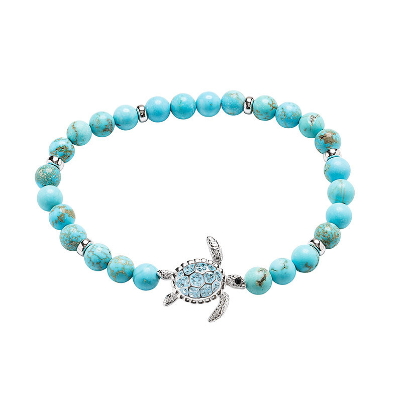 Sterling Silver Turquoise Turtle Stretchy Bracelet