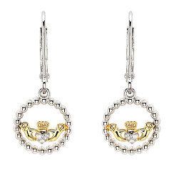 Sterling Silver Cz Claddagh Drop Earrings 1m