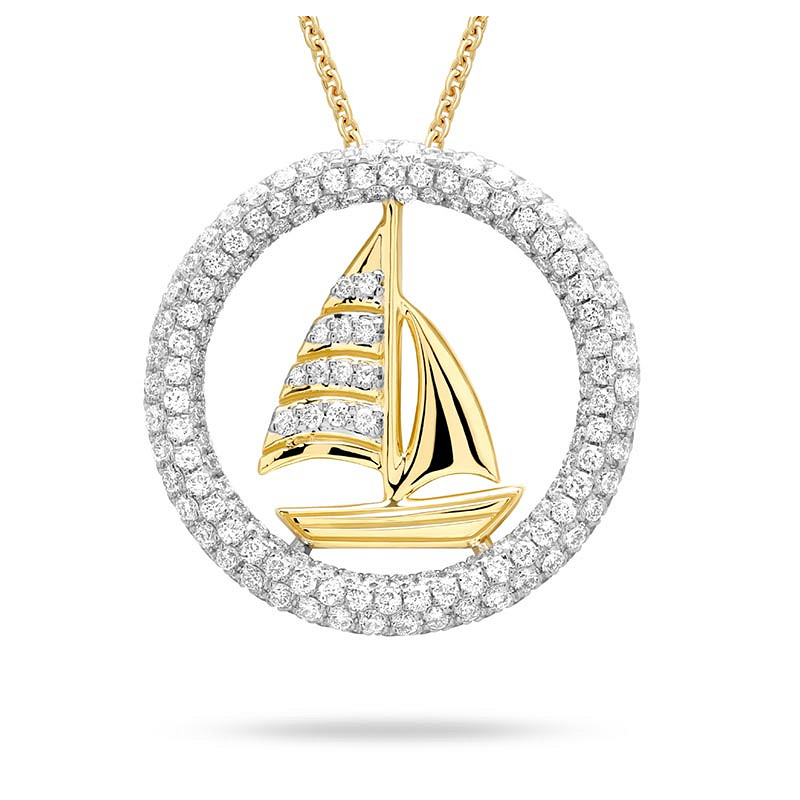 14kt Gold Lab Diamond Sail Boat Necklace