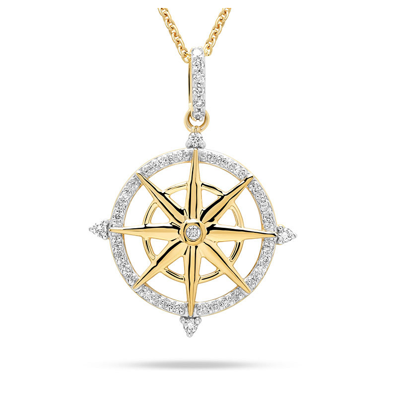 14kt Gold Lab Diamond Ship Wheel Necklace