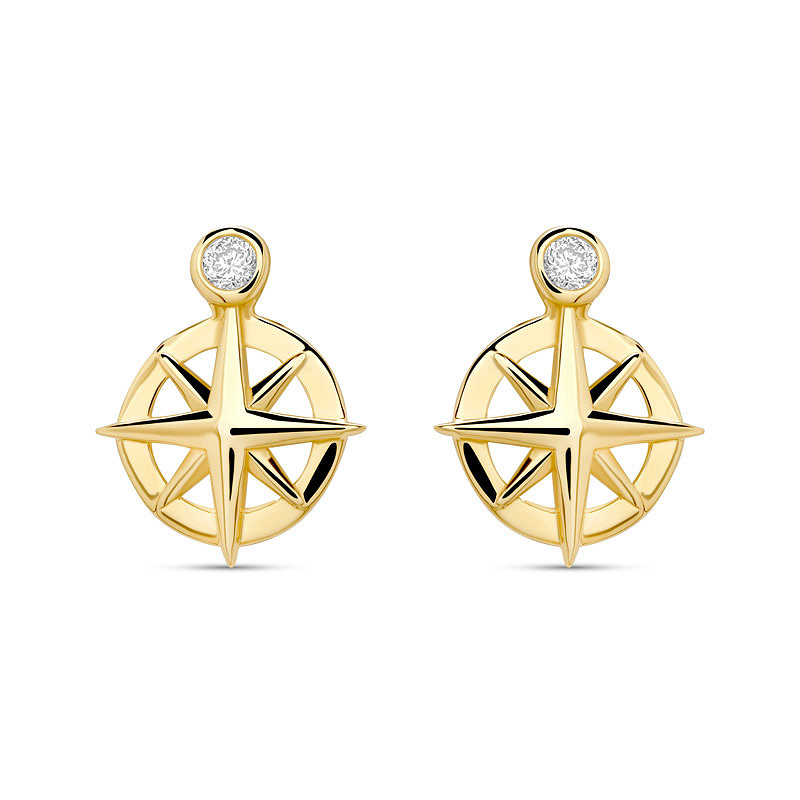 14kt Gold Lab Diamond Ships Wheel Earrings