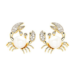 14kt Gold Lab Diamond/Freshwater Pearl Crab Earrings