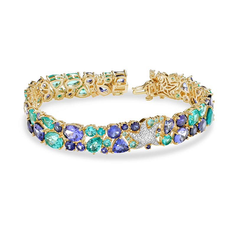 14kt Gold Lab Pariba Sapphire and Diamond Starfish Bracelet
