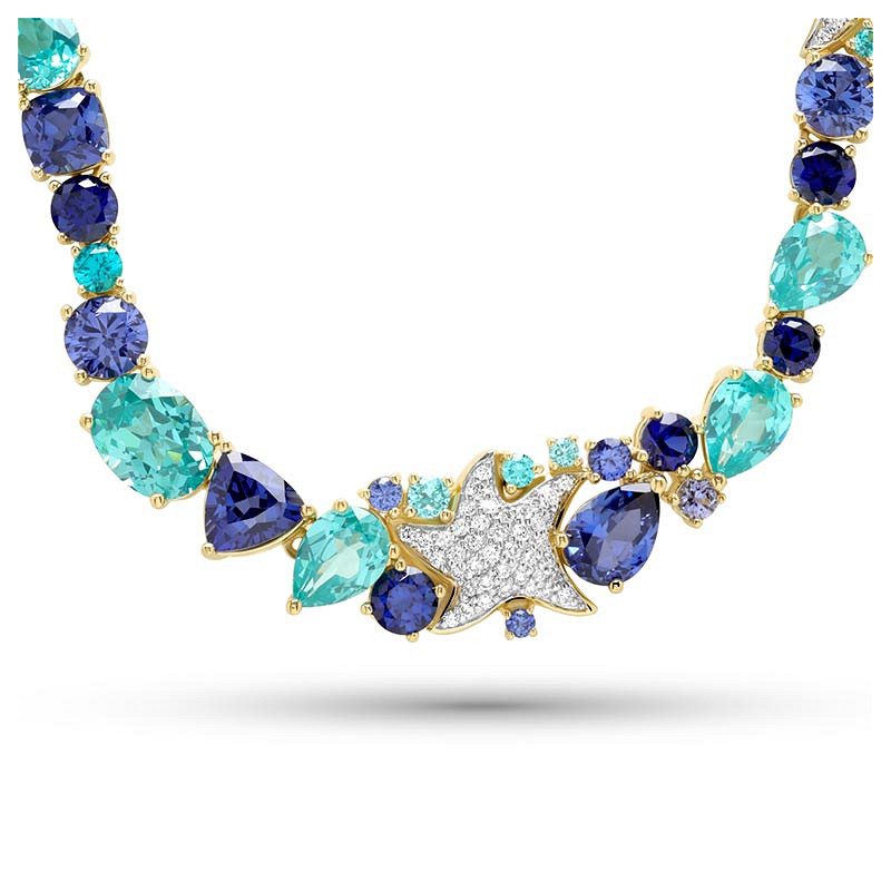 14kt Gold Lab Pariba Sapphire and Diamond Starfish Necklace