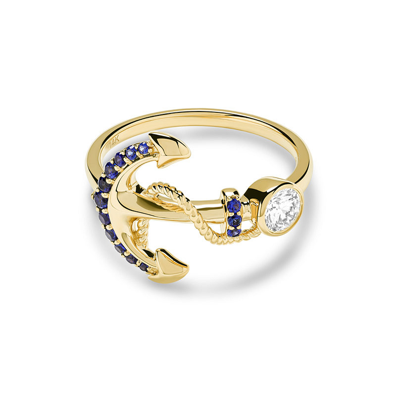 14kt Gold Lab Sapphire and Diamond Anchor Ring