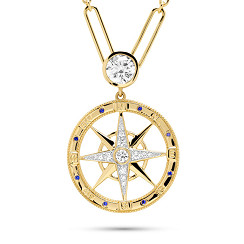 14kt Gold Lab Sapphire and Diamond Compass Necklace