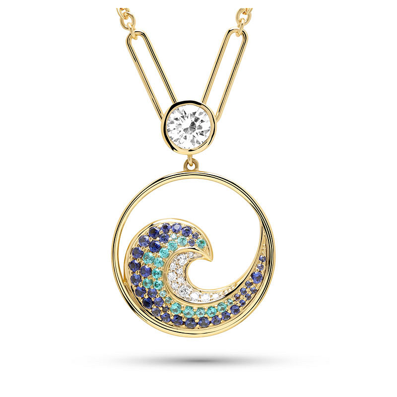 14kt Gold Lab Sapphire and Diamond Wave Necklace