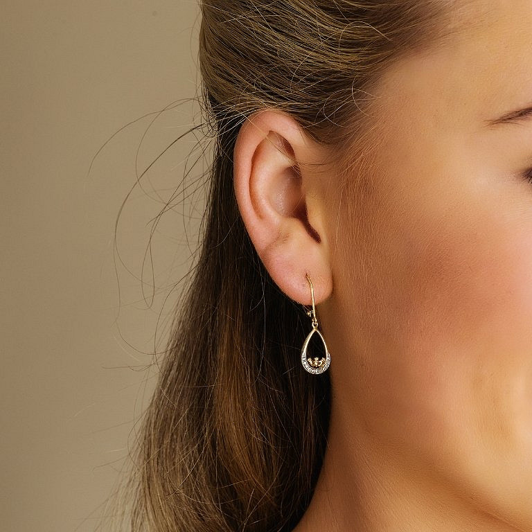 14K Diamond set Claddagh Earrings .08ct