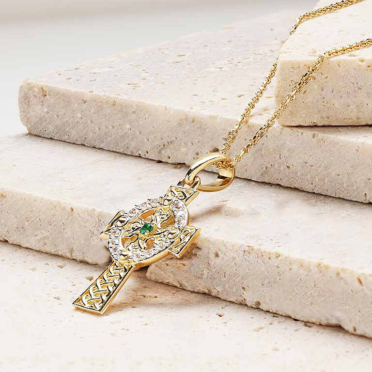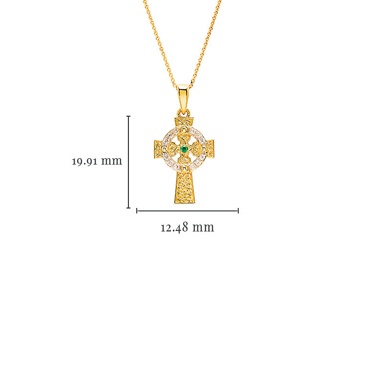 14K Gold Lab Diamond and Emerald Celtic Cross .08ct