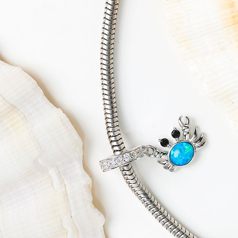 Sterling Silver CZ and Opal Crab Bead