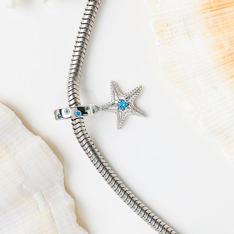 Sterling Silver CZ Blue Topaz Star Bead