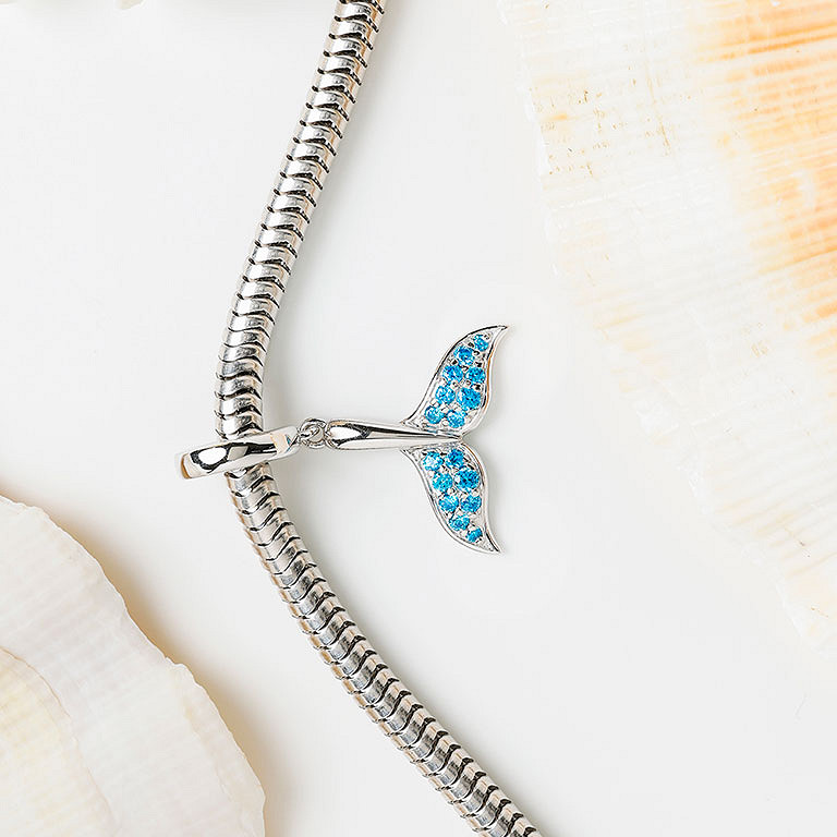 Sterling Silver CZ Blue Topaz Whale Tail Bead