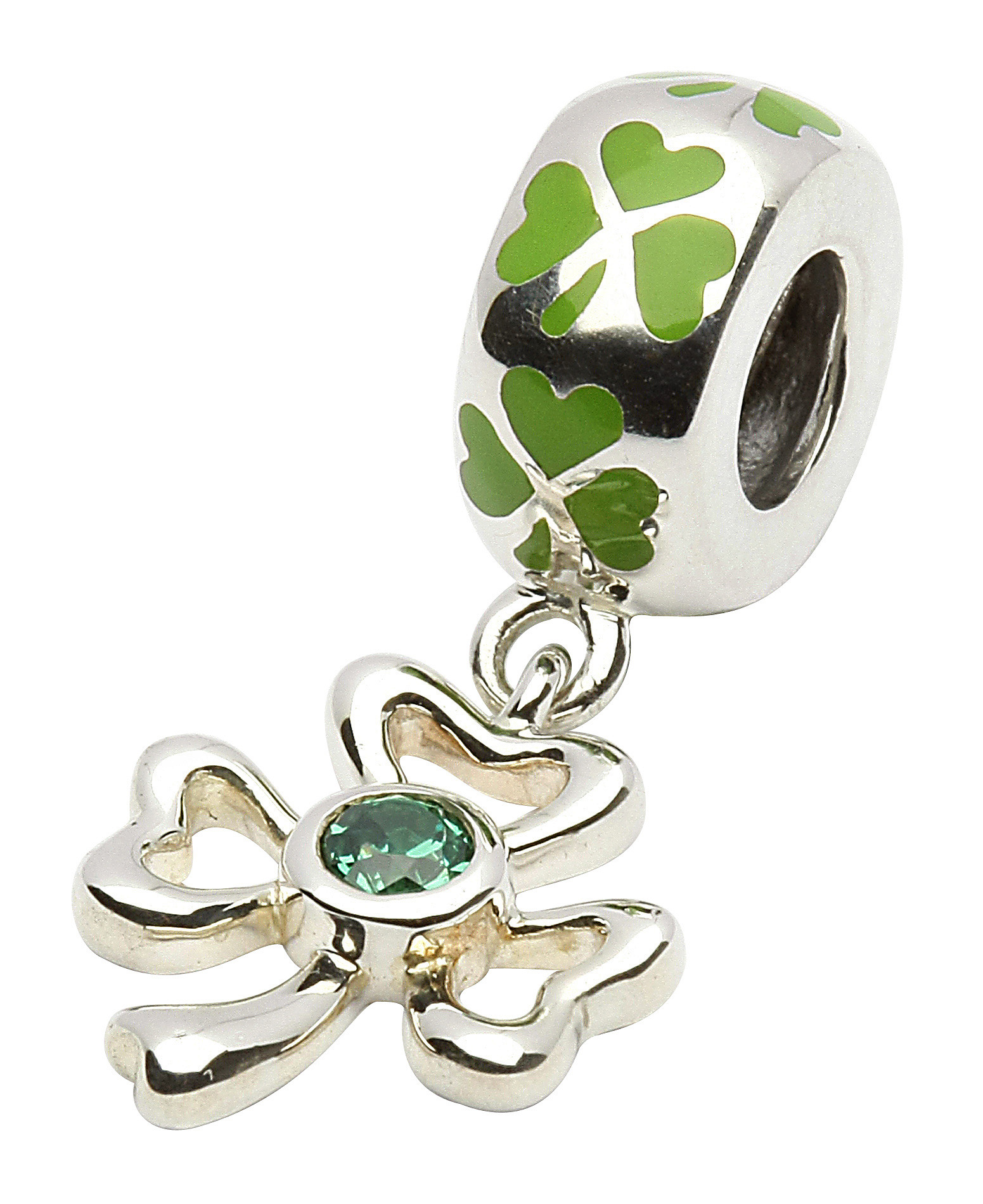 Sterling Silver Enamel Shamrock drop Bead