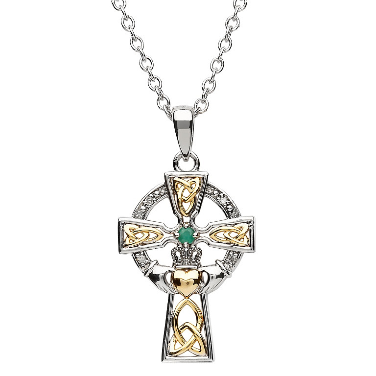 Sterling Silver Gold Plate Emerald Diamond Celtic Cross