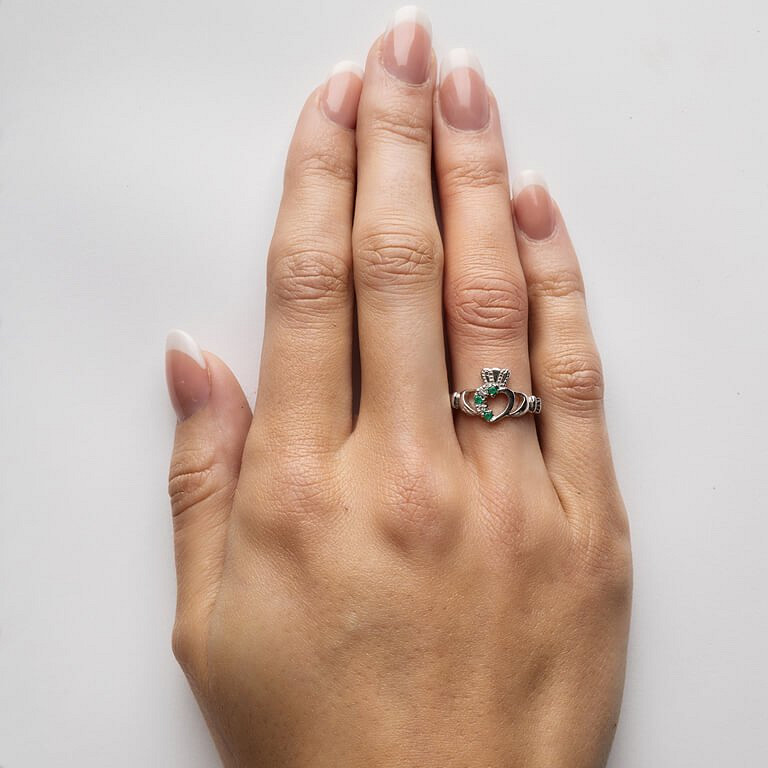 STERLING SILVER GREEN CZ CLADDAGH RING