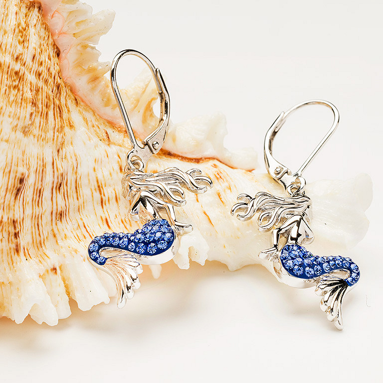 Sterling Silver Sapphire Blue Mermaid Earrings