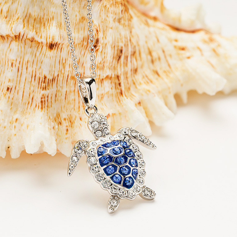 Sterling Silver Sapphire Blue Turtle Necklace