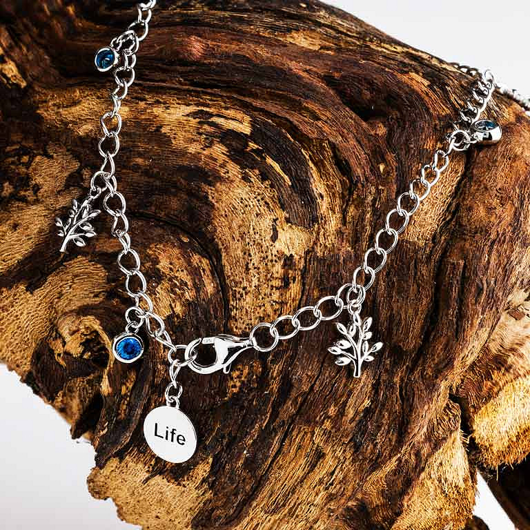 Sterling Silver Sapphire CZ Tree of life Bracelet