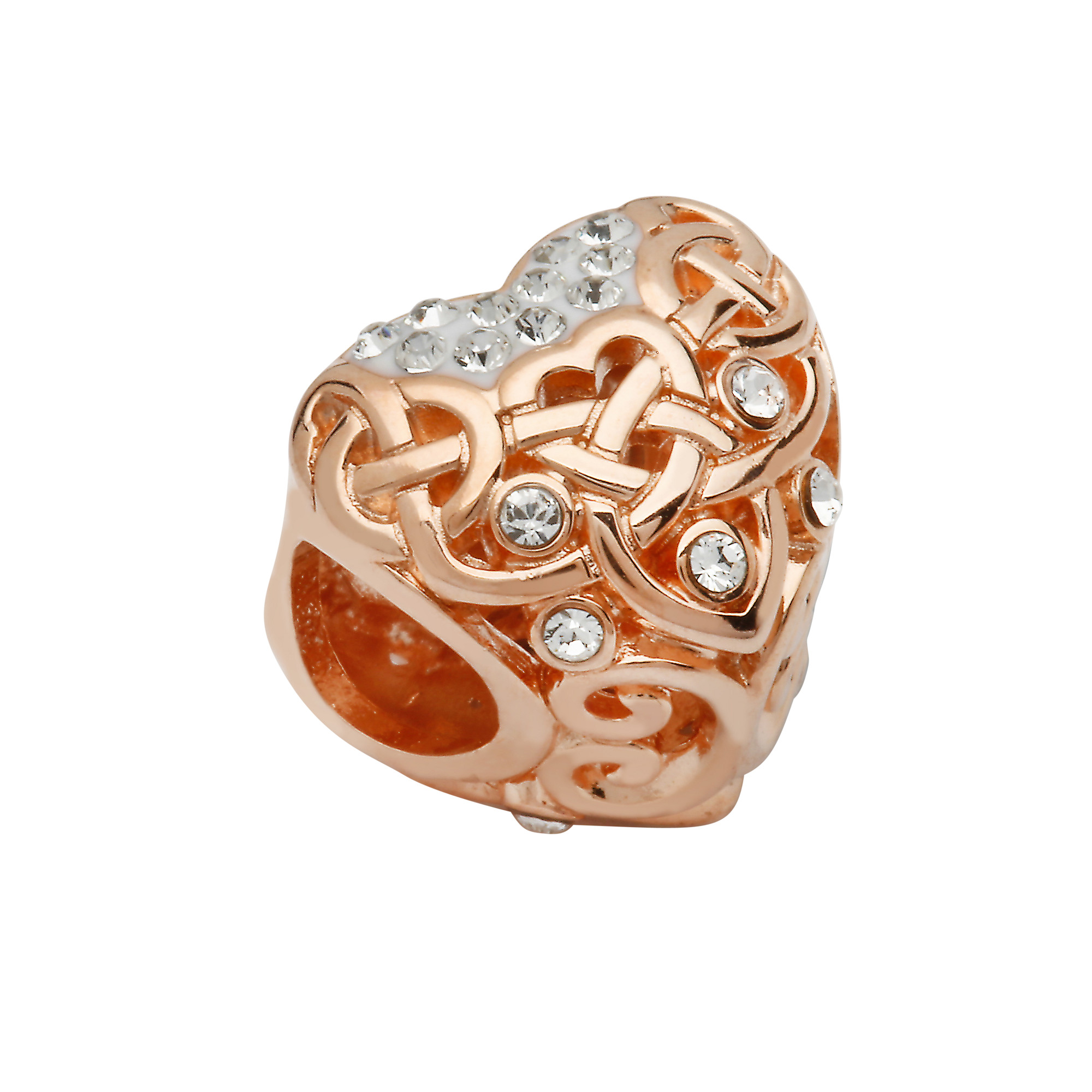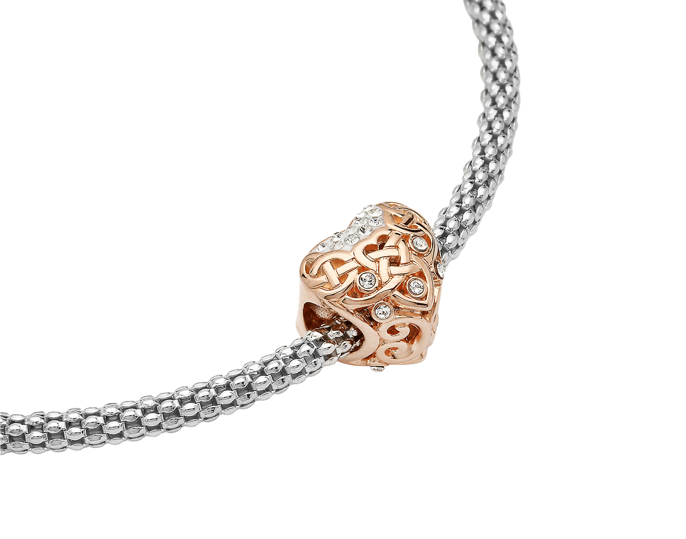 Sterling Silver TD Rose Gold Celtic Heart Bead Swarovski