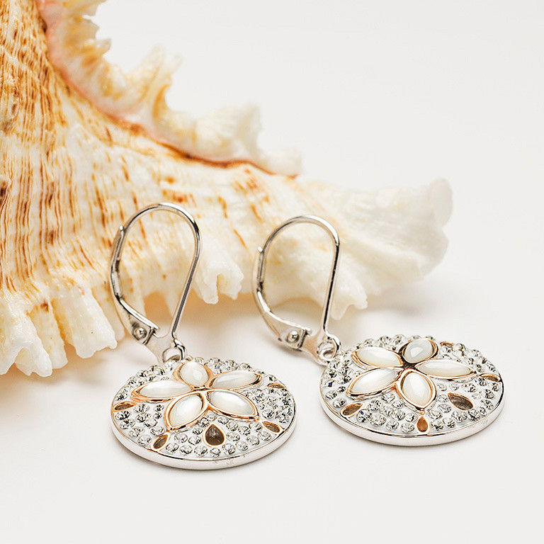 Sterling Silver White Crystal sand Dollar Earrings