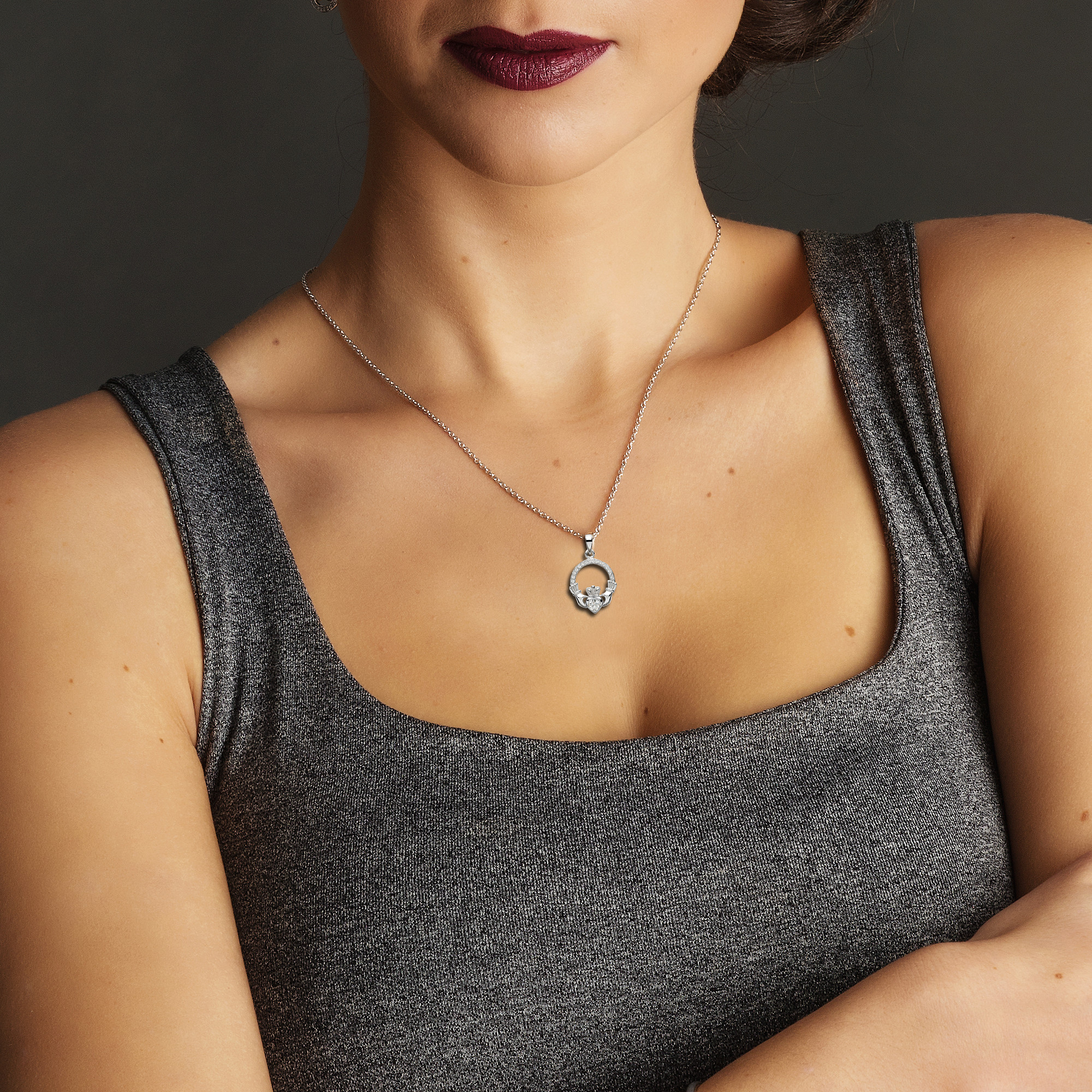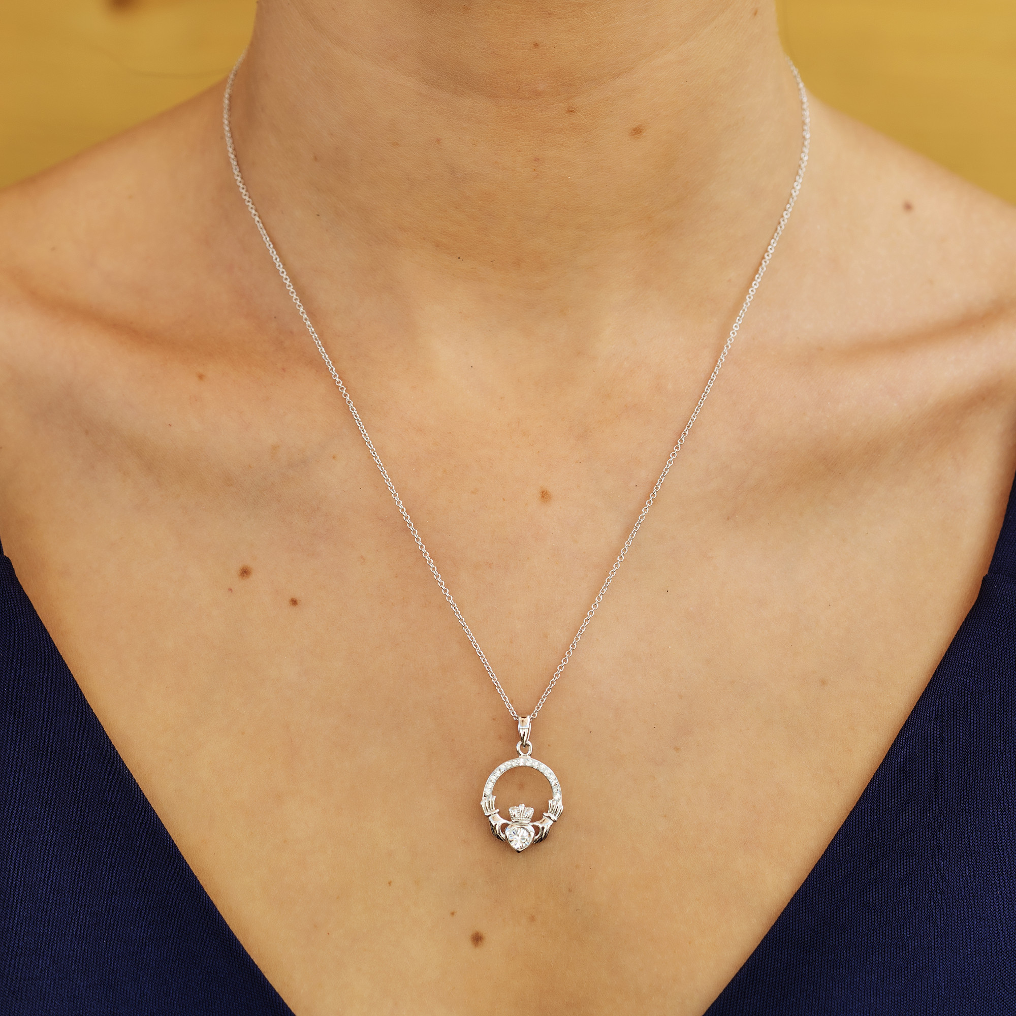 Silver April Claddagh Birthstone Necklace with SW Crystals