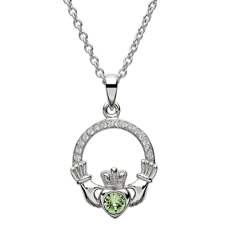 SS August Claddagh Birthstone Necklace with SW Crystals