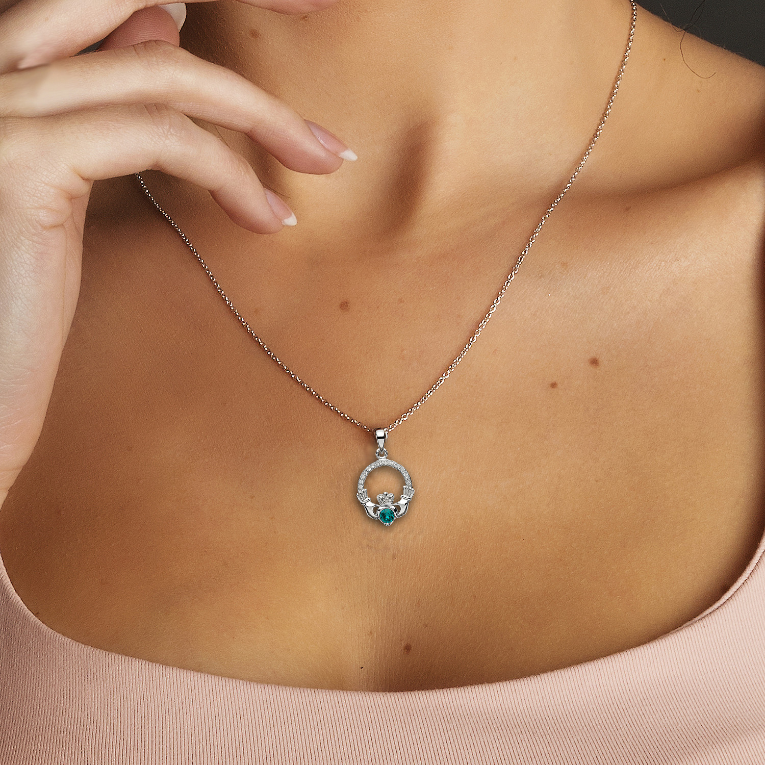 SS May Claddagh Birthstone Necklace with SW Crystals