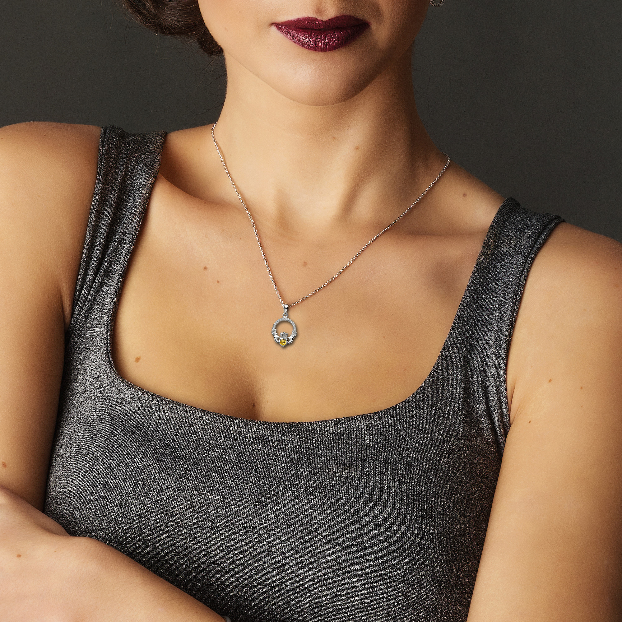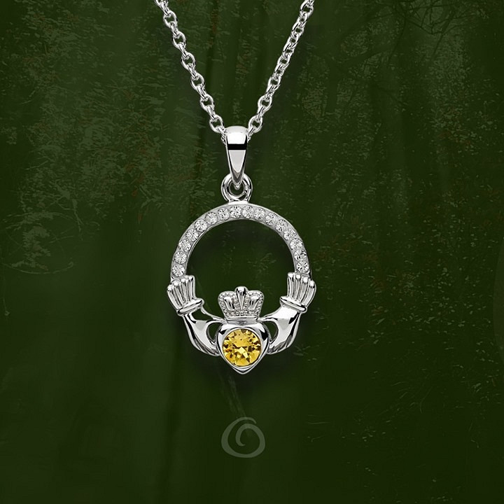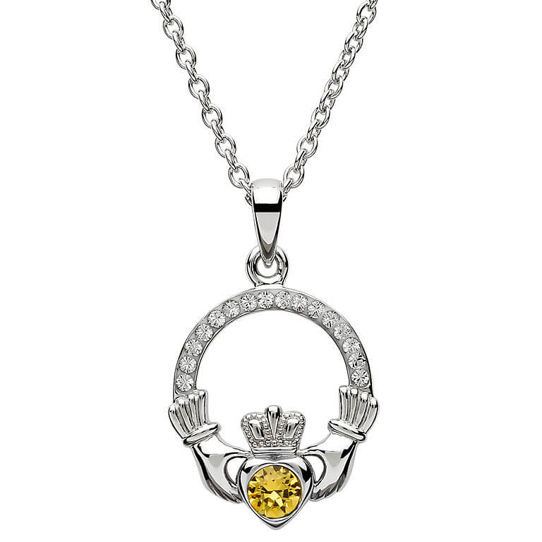 SS November Claddagh Birthstone Necklace with SW Crystals