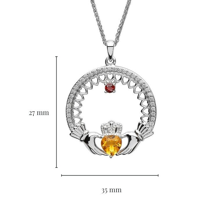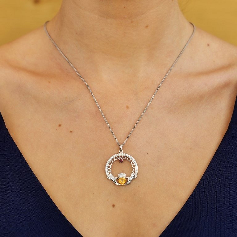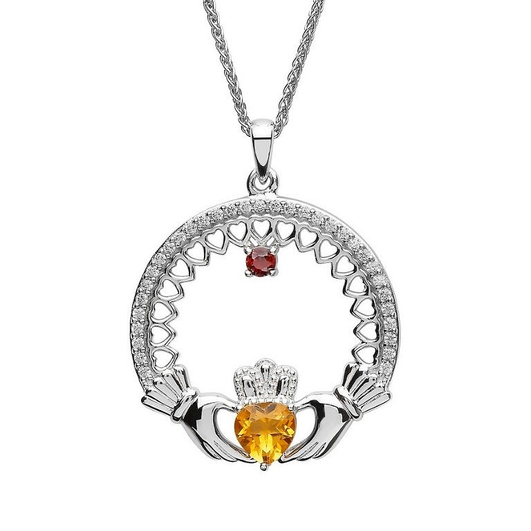 Sterling Silver 1 Stone Family Claddagh Necklace