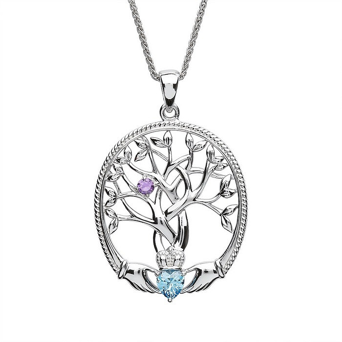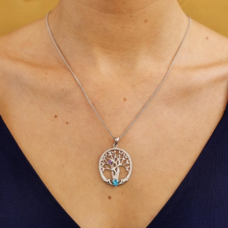 Sterling Silver 1 Stone Family Tree of Life Pendant