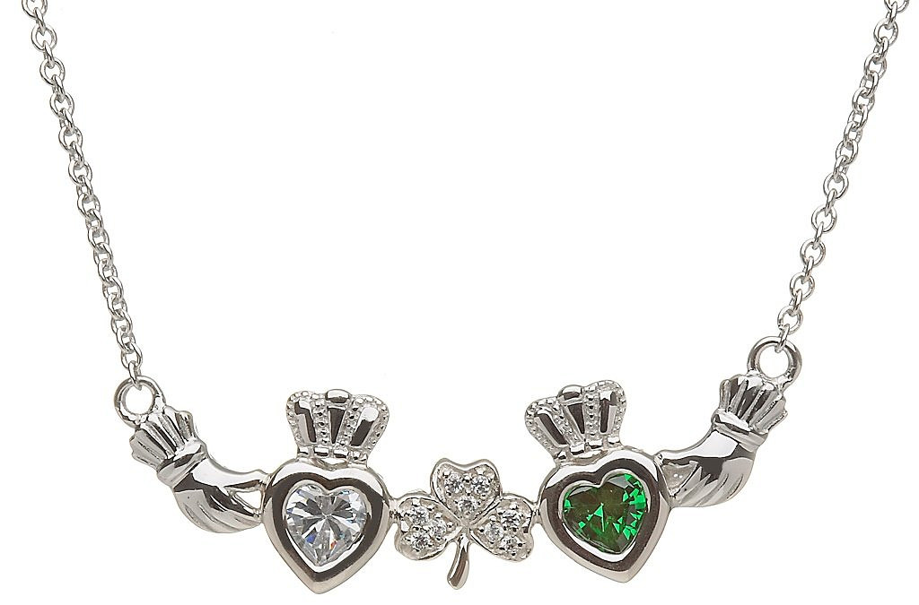 Sterling Silver 2 Stone Shamrock Mothers Pendant