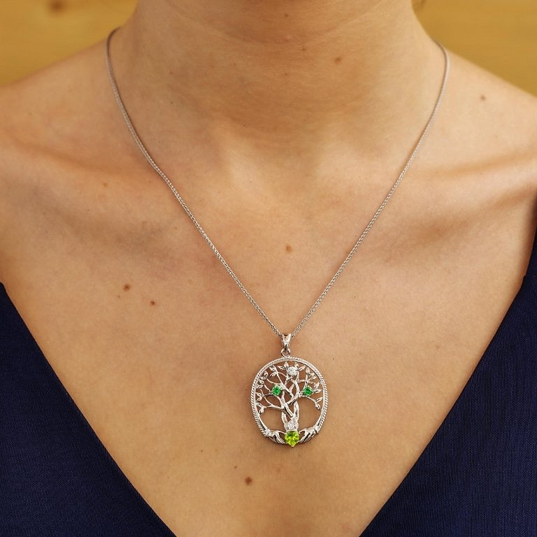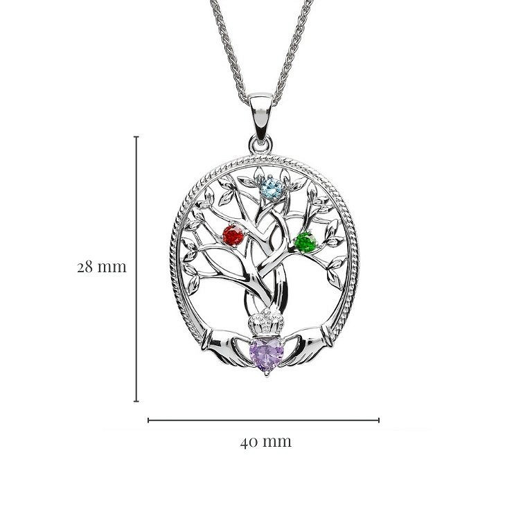 Sterling Silver 3 Stone Family Tree of Life Pendant