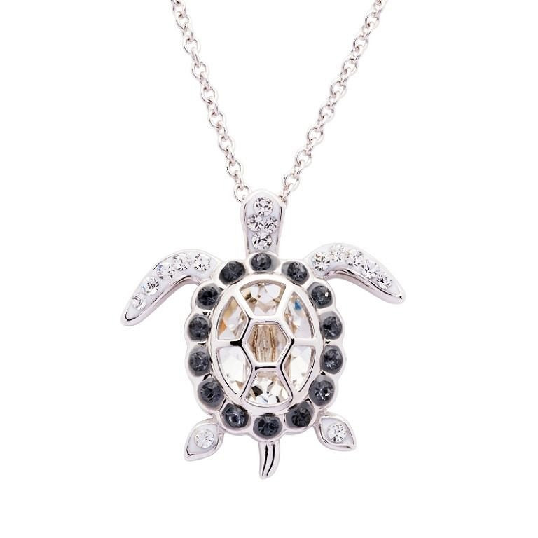 Sterling Silver Swarovski April Turtle Birthstone Pendant