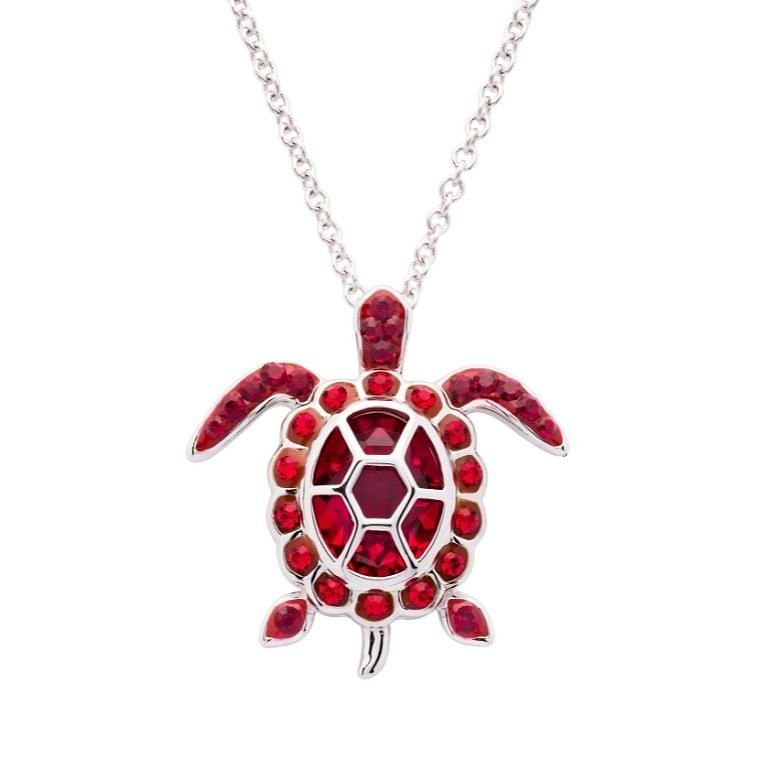 Sterling Silver Swarovski January Turtle Birthstone Pendant