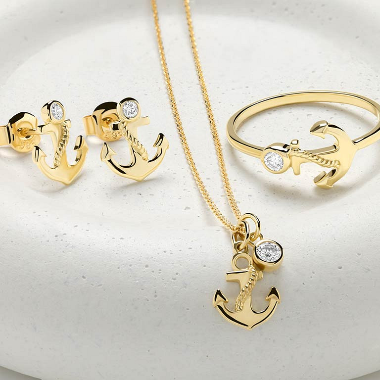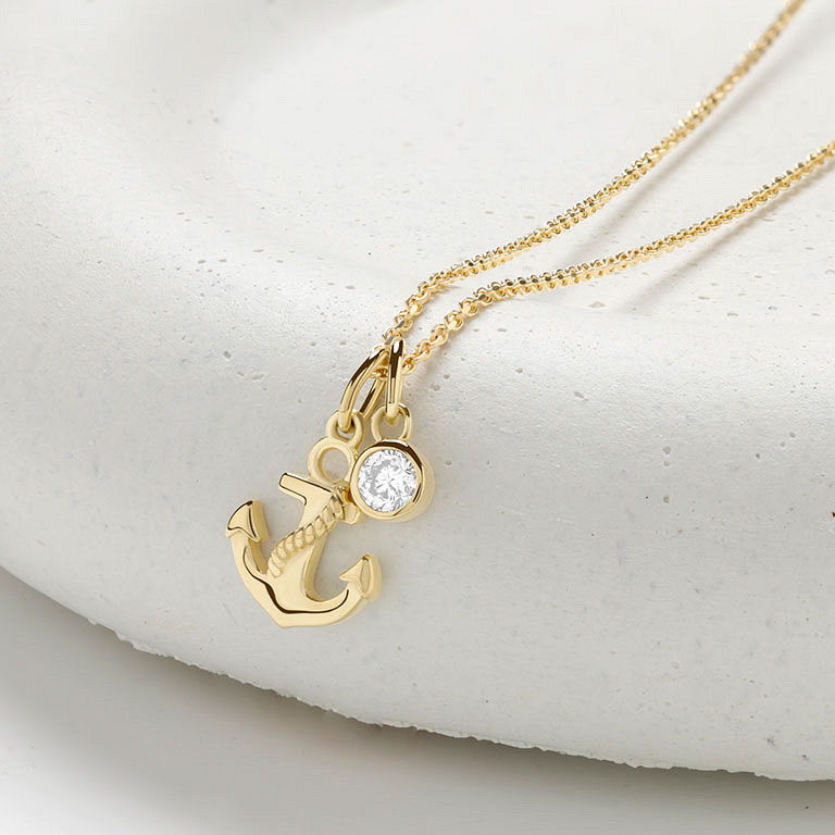 14kt Gold Lab Diamond Anchor Necklace