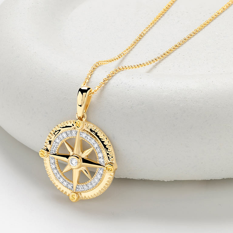 14kt Gold Lab Diamond Compass Necklace